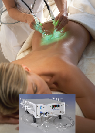 The Chromapuncteur (light machine) offers energetic frequencies from the visible spectrum of electromagnetic waves, in harmony with the energies of each of the five elements, and of the major energetic centers (chakras) | The Biodraineur (drainage machine) that mechanically reproduces the gentle movement of a hand massage focused on moving energy and fluids. | The Biostimulateur is a highly specialized piece of equipment used to work on points of acupuncture and reflex zones with precalibrated mechanical vibrations. |